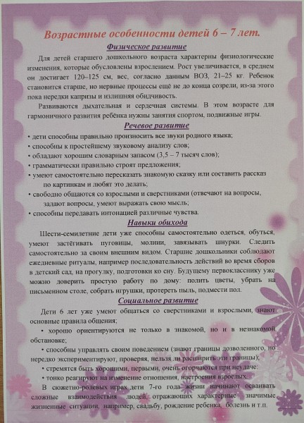 Возрастные особенности детей 6-7 лет